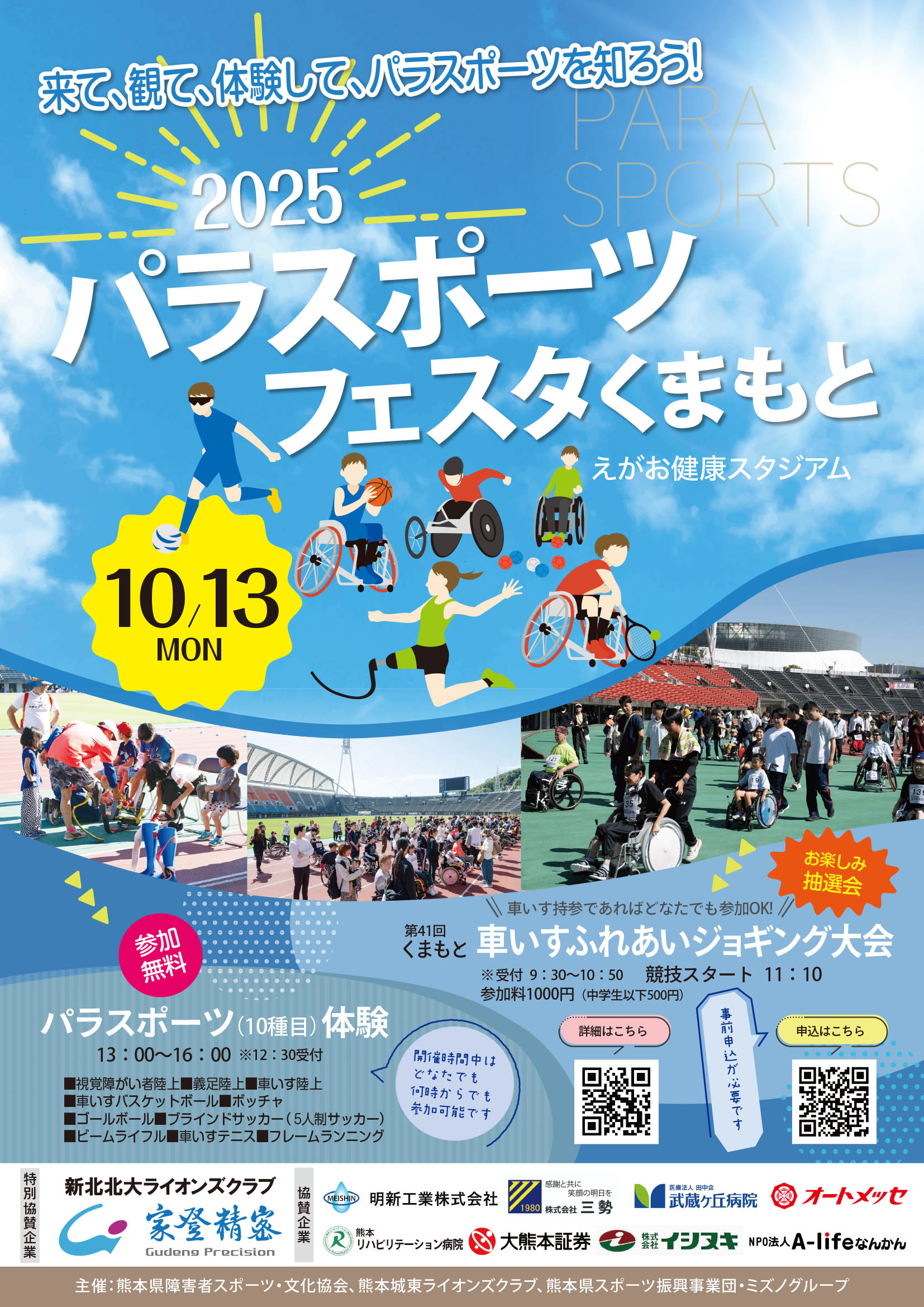 熊本県障害者スポーツ・文化協会、熊本城東ライオンズクラブ、熊本県スポーツ振興事業団・ミズノグループ