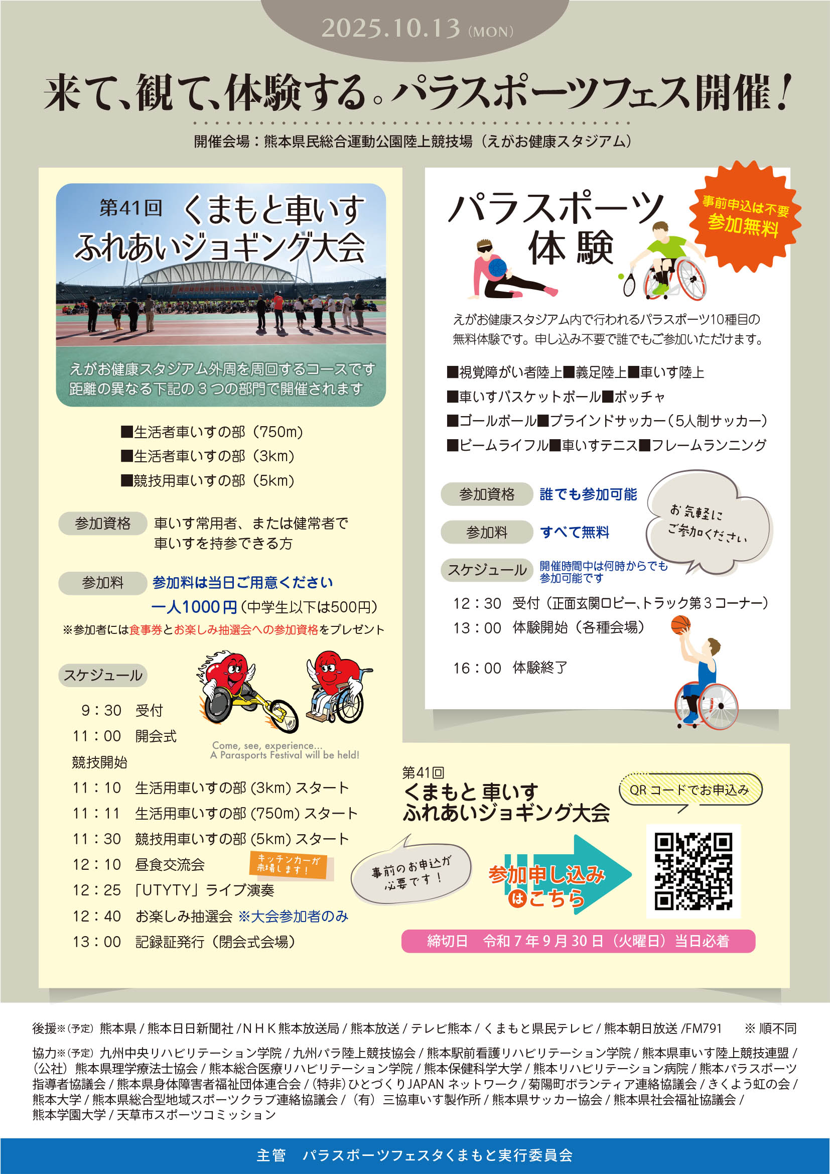 九州中央リハビリテーション学院/九州パラ陸上競技協会/熊本駅前看護リハビリテーション学院/熊本県車いす陸上競技連盟/(公社)熊本県理学療法士協会/熊本総合医療リハビリテーション学院/熊本保健科学大学/熊本リハビリテーション病院/熊本パラスポーツ指導者協議会/熊本県身体障害者福祉団体連合会/(特非)ひとづくりJAPANネットワーク/菊陽町ボランティア連絡協議会/きくよう虹の会/熊本大学/熊本県総合型地域スポーツクラブ連絡協議会/(有)三協車いす製作所/熊本県サッカー協会/熊本県社会福祉協議会/熊本学園大学/天草市スポーツコミッション